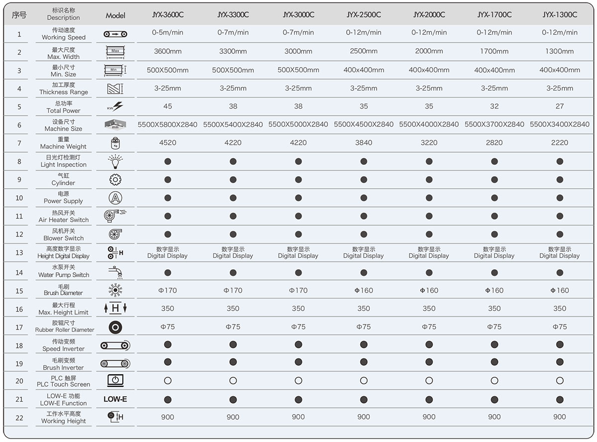 三對(duì)大毛刷配置、可洗LOW-E玻璃、普通鍍膜和陽光鍍膜玻璃。